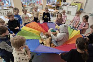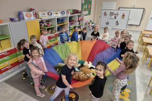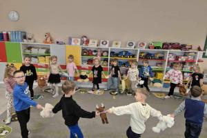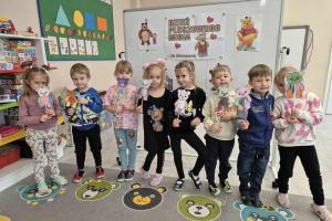 Nie zabrakło zajęć na temat historii powstania naszego bohatera, wesołych zabaw przy misiowych przebojach oraz rozmów o znanych i lubianych misiach z dziecięcych bajek. Dzieci, opowiadały o swoich maskotkach i wykonały pracę plastyczną. Ten dzień wywołał u przedszkolaków wiele uśmiechów i radości.