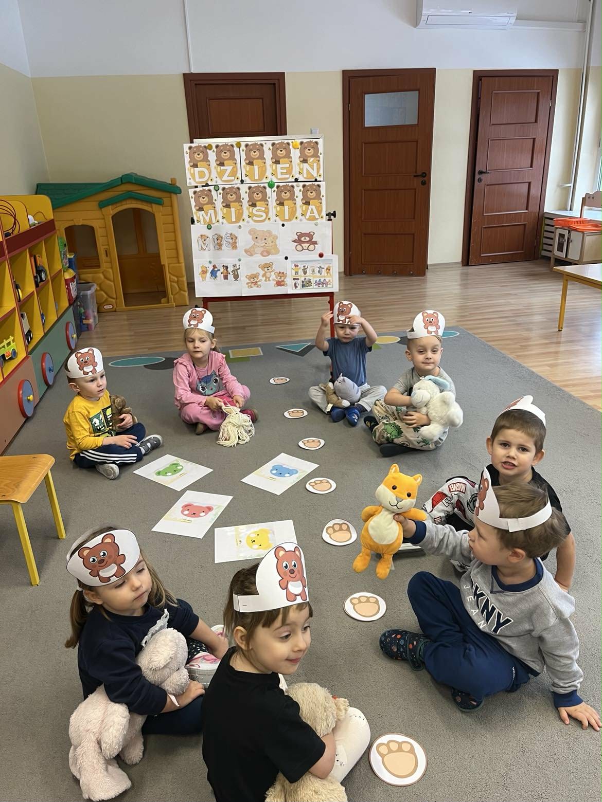 Nie zabrakło zajęć na temat historii powstania naszego bohatera, wesołych zabaw przy misiowych przebojach oraz rozmów o znanych i lubianych misiach z dziecięcych bajek. Dzieci, opowiadały o swoich maskotkach i wykonały pracę plastyczną. Ten dzień wywołał u przedszkolaków wiele uśmiechów i radości.