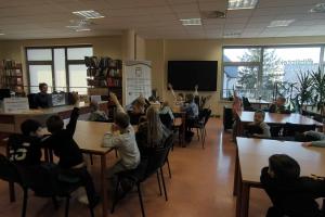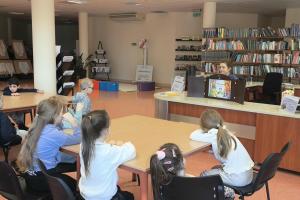 28 listopada przedszkolaki odwiedziły Bibliotekę Pedagogiczną, gdzie obejrzały opowiadanie z teatrzyku kamishibai pt. „Pory roku, czyli Rok i jego cztery córki”. Dzieci z zainteresowaniem śledziły ilustracje i rozmawiały o ulubionych porach roku i i zmianach zachodzących w przyrodzie.