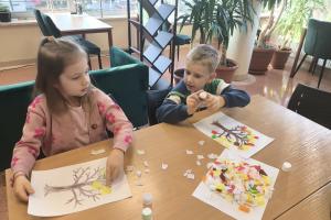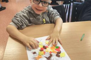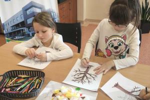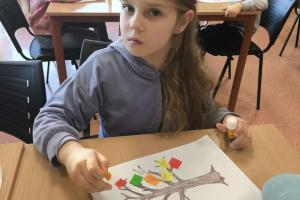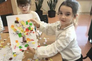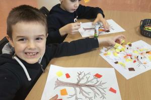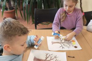 Po wysłuchaniu historii wykonały jesienną pracę plastyczną, tworząc kolorowe kompozycje zainspirowane aktualną porą roku. Każda praca była inna – pełna kreatywności, wyobraźni i jesiennych kolorów. Wizyta była ciekawym doświadczeniem, łączącym naukę, sztukę i dobrą zabawę.