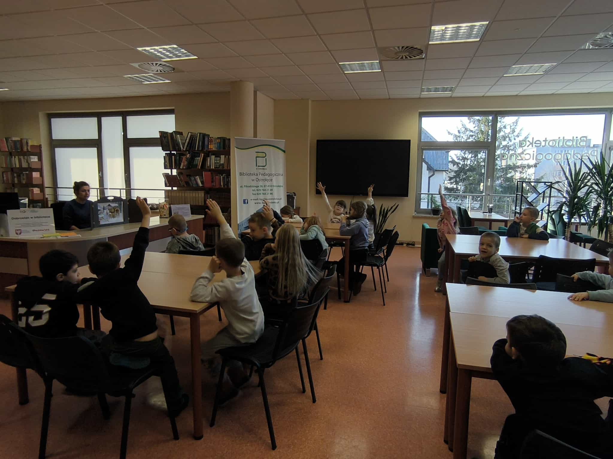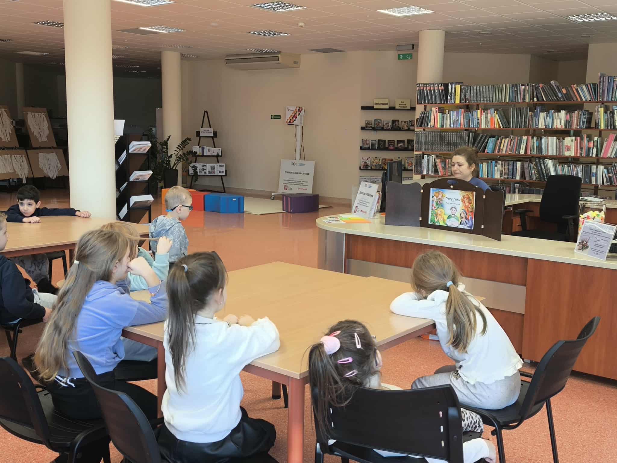 28 listopada przedszkolaki odwiedziły Bibliotekę Pedagogiczną, gdzie obejrzały opowiadanie z teatrzyku kamishibai pt. „Pory roku, czyli Rok i jego cztery córki”. Dzieci z zainteresowaniem śledziły ilustracje i rozmawiały o ulubionych porach roku i i zmianach zachodzących w przyrodzie.