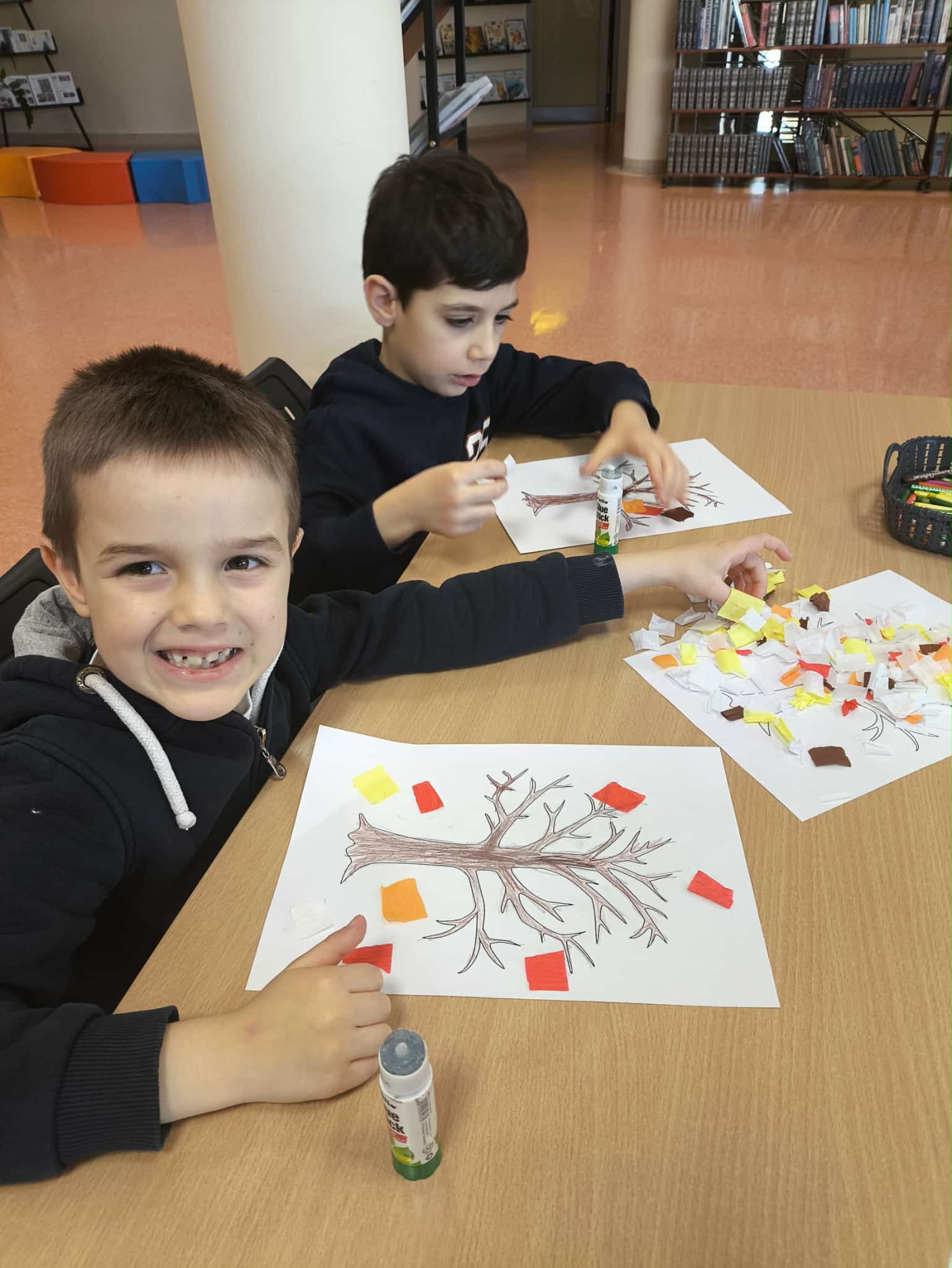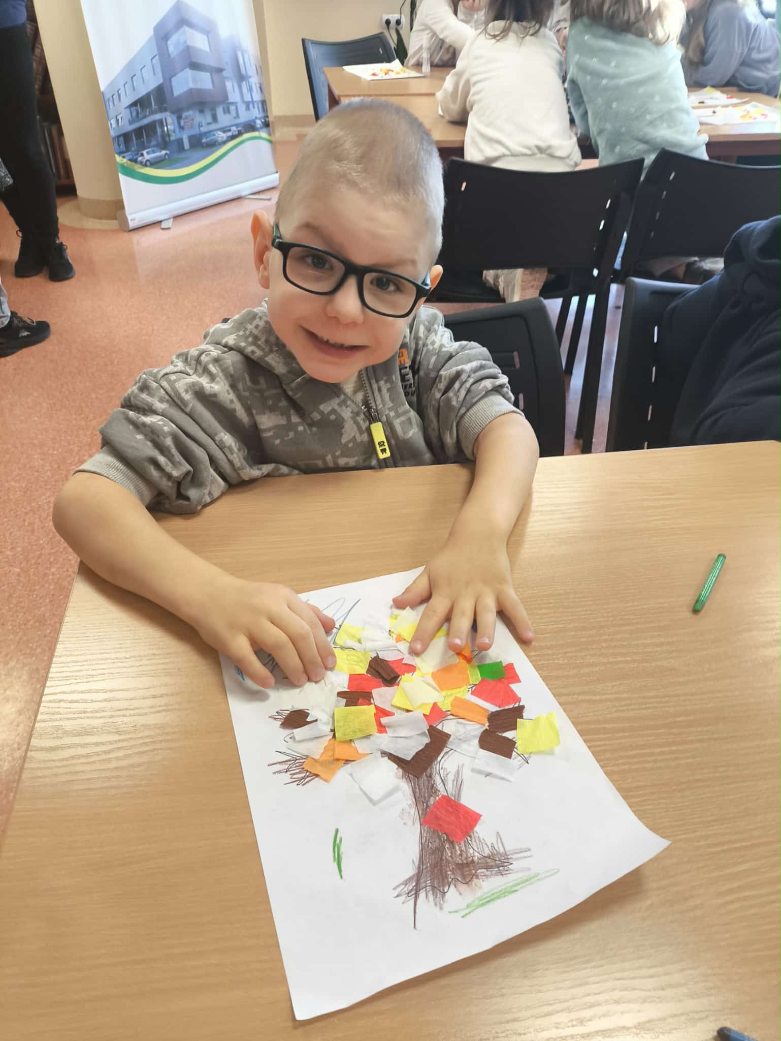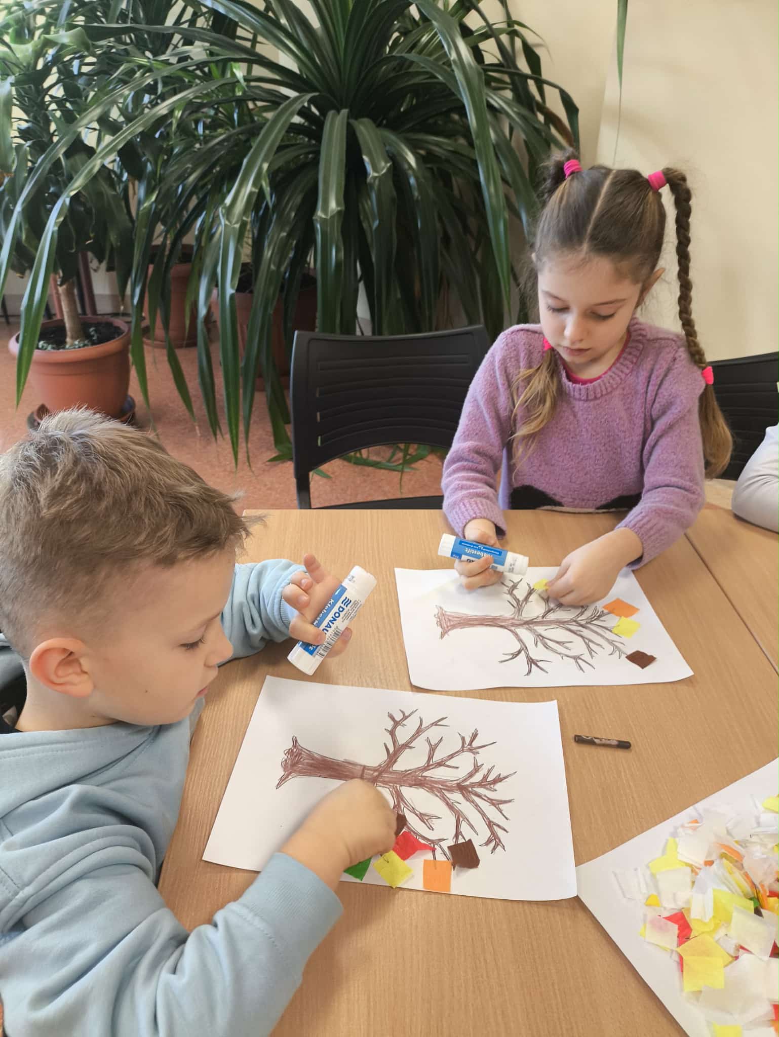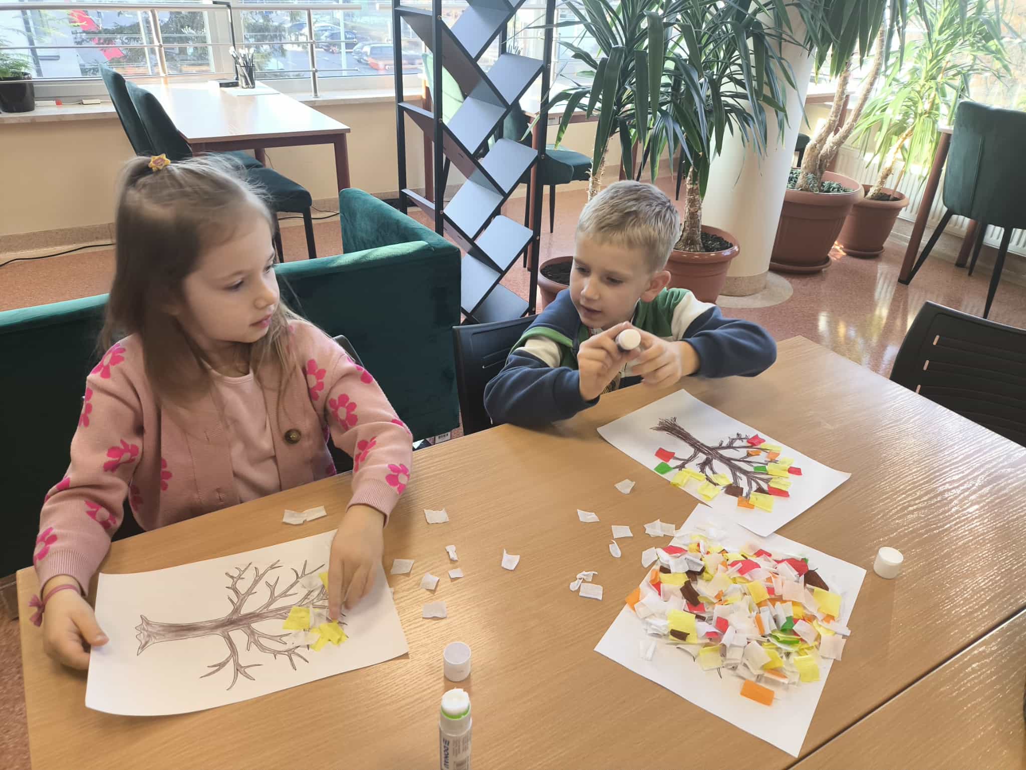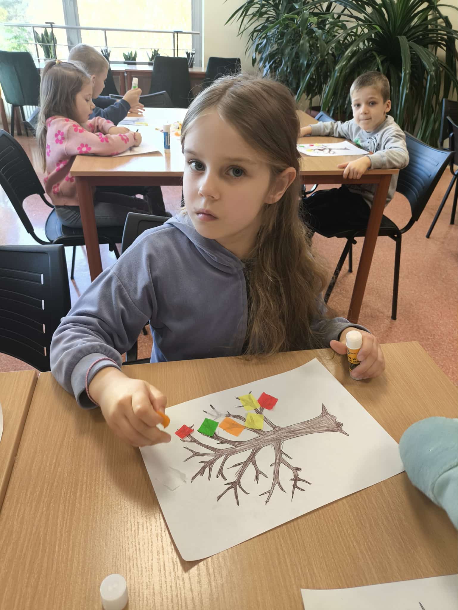 Po wysłuchaniu historii wykonały jesienną pracę plastyczną, tworząc kolorowe kompozycje zainspirowane aktualną porą roku. Każda praca była inna – pełna kreatywności, wyobraźni i jesiennych kolorów. Wizyta była ciekawym doświadczeniem, łączącym naukę, sztukę i dobrą zabawę.