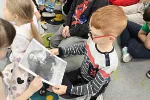 26 listopada „Słoneczka” odwiedził p. dr Krzysztof Augustyniak – tata Tomka, który przygotował dla dzieci niezwykle ciekawą opowieść o wybitnych Polakach, którzy swoją wiedzą, odwagą i pracą zmieniali świat. Przedszkolaki usłyszały o niezwykłych odkryciach Marii Skłodowskiej-Curie, o bohaterskich dokonaniach Józefa Bema, o przełomowej teorii Mikołaja Kopernika, a także o osiągnięciach Józefa Psarskiego. Dzieci z ogromnym zainteresowaniem słuchały historii o polskich wynalazcach, uczonych i twórcach, poznając, jak wiele możemy zawdzięczać rodakom. Spotkanie zakończyło się piękną rozmową o dumie z bycia Polakiem i o tym, jak ważne jest pielęgnowanie naszej historii i tożsamości.